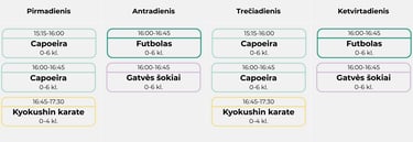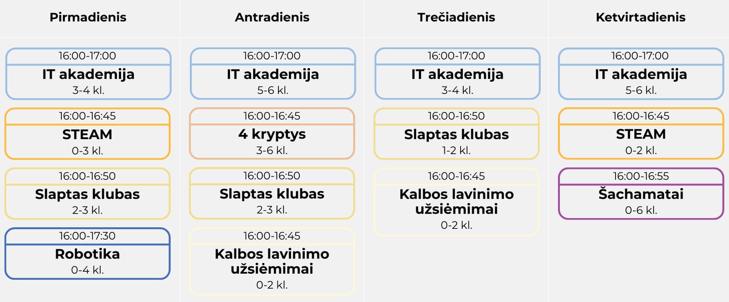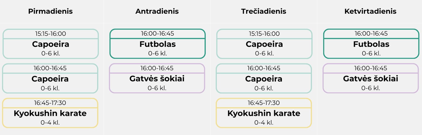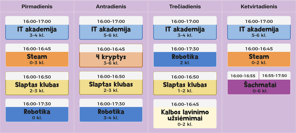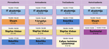H+ veiklų tvarkaraštis