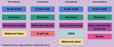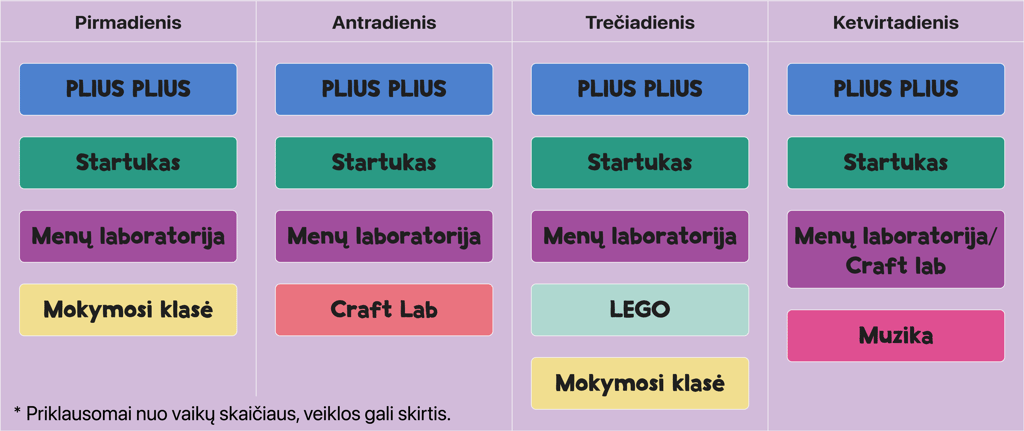 H+ veiklų TVARKARAŠTIS