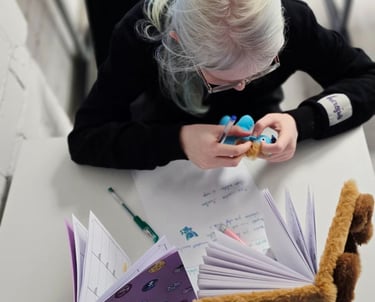 Kūrybinio rašymo ir iliustravimo dirbtuvės – tai jaukus ir kūrybiškas būrelis 3–7 klasių vaikams, kuriame vaikai kurs savo istorijas, pieš veikėjus, viršelius, mokysis pasakoti, lavins vaizduotę ir saviraišką. Dirbtuvėse laukiami visi – tiek mėgstantys rašyti, tiek norintys pabandyti. Ne tik rašysime, iliustruosime, bet ir keliausime į biblioteką, parodas, spaustuvę, susitiksime su knygų kūrėjais, o metų pabaigoje – kiekvienas dalyvis sukurs ir suriš savo unikalią knygą. Tai vieta, kur svarbiausia – džiaugtis kūryba, pasitikėti savo idėjomis ir žingsnis po žingsnio tapti tikru kūrėju.